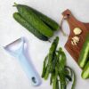 Includes chopping board, knife, and vegetable peeler