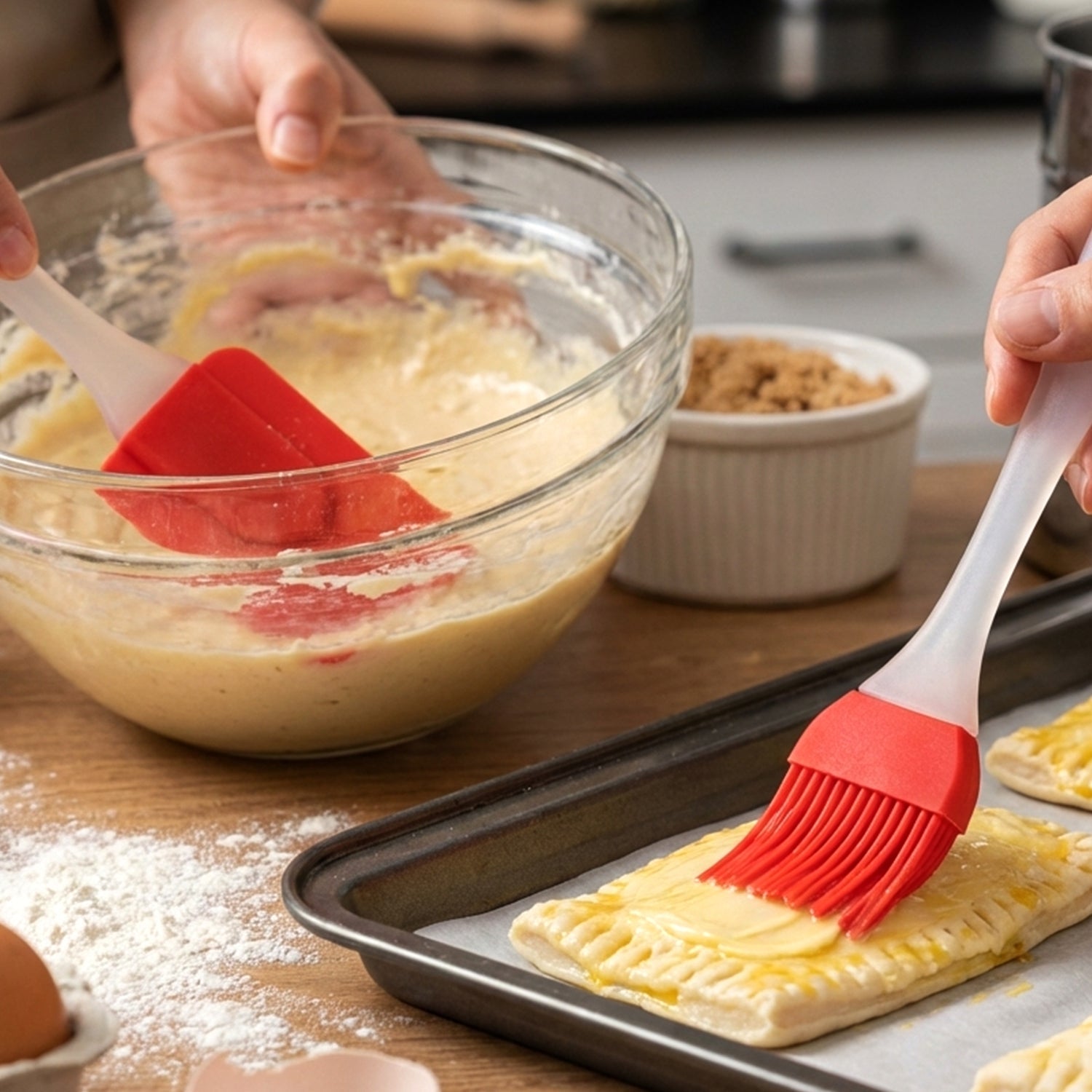 Mixing, stirring, and spreading ingredients